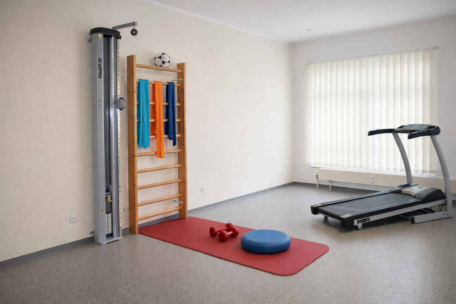 Lichtdurchfluteter Gymnastikraum – ideal für Gruppen- oder Einzeltraining sowie für Präventionskurse wie Pilates.